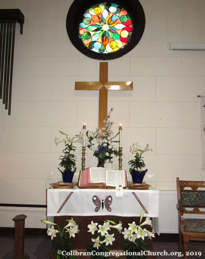 Easter altar in the Sanctuary, Collbran Congregational Church, 2019